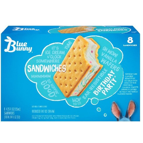 Blue Bunny Birthday Party Ice Cream Sandwiches 4 25 Fl Oz 8pk