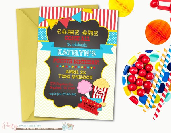 Carnival Birthday Invitation Circus Birthday Invitation Party